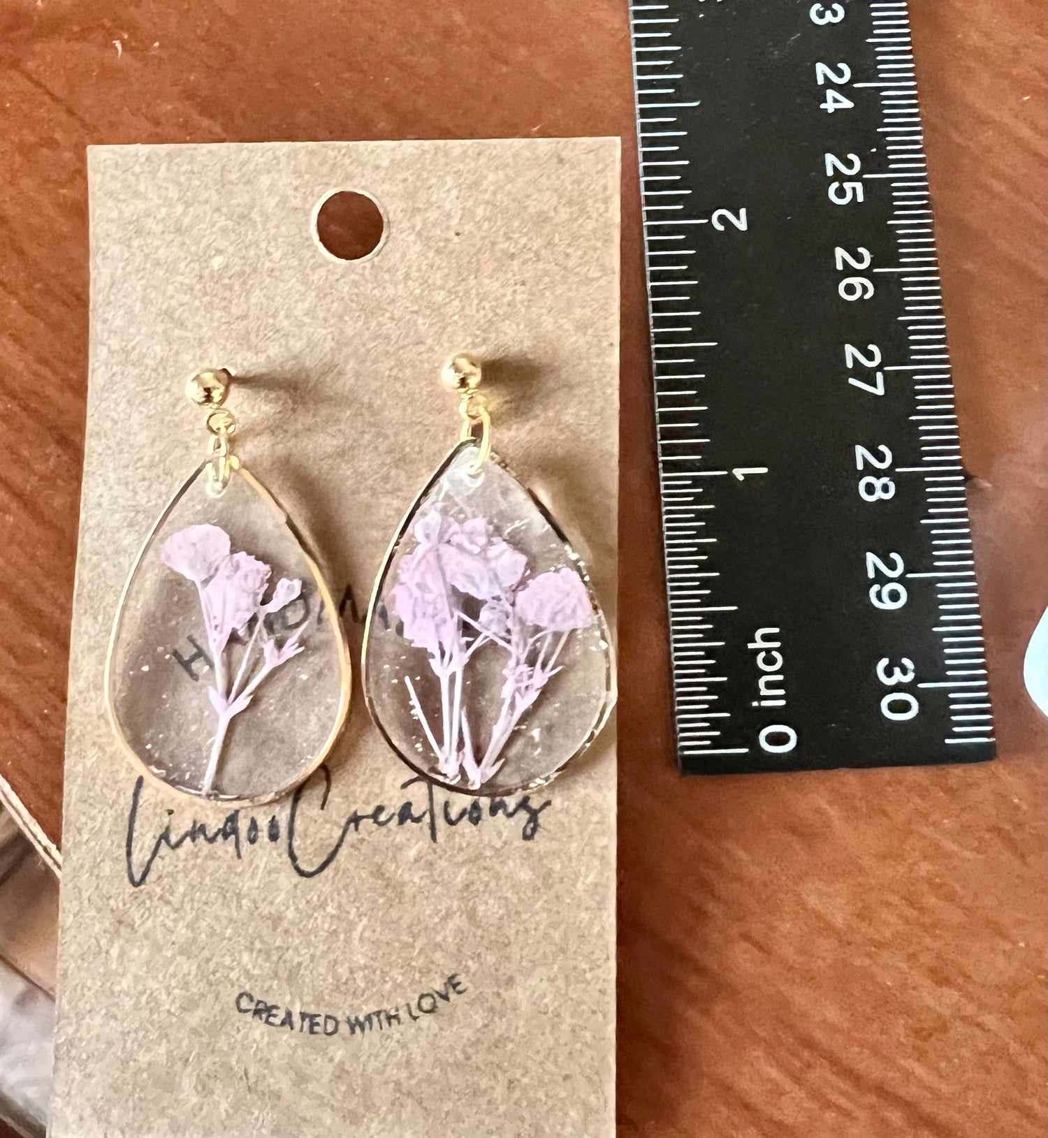 These earrings are made with items encased in resin