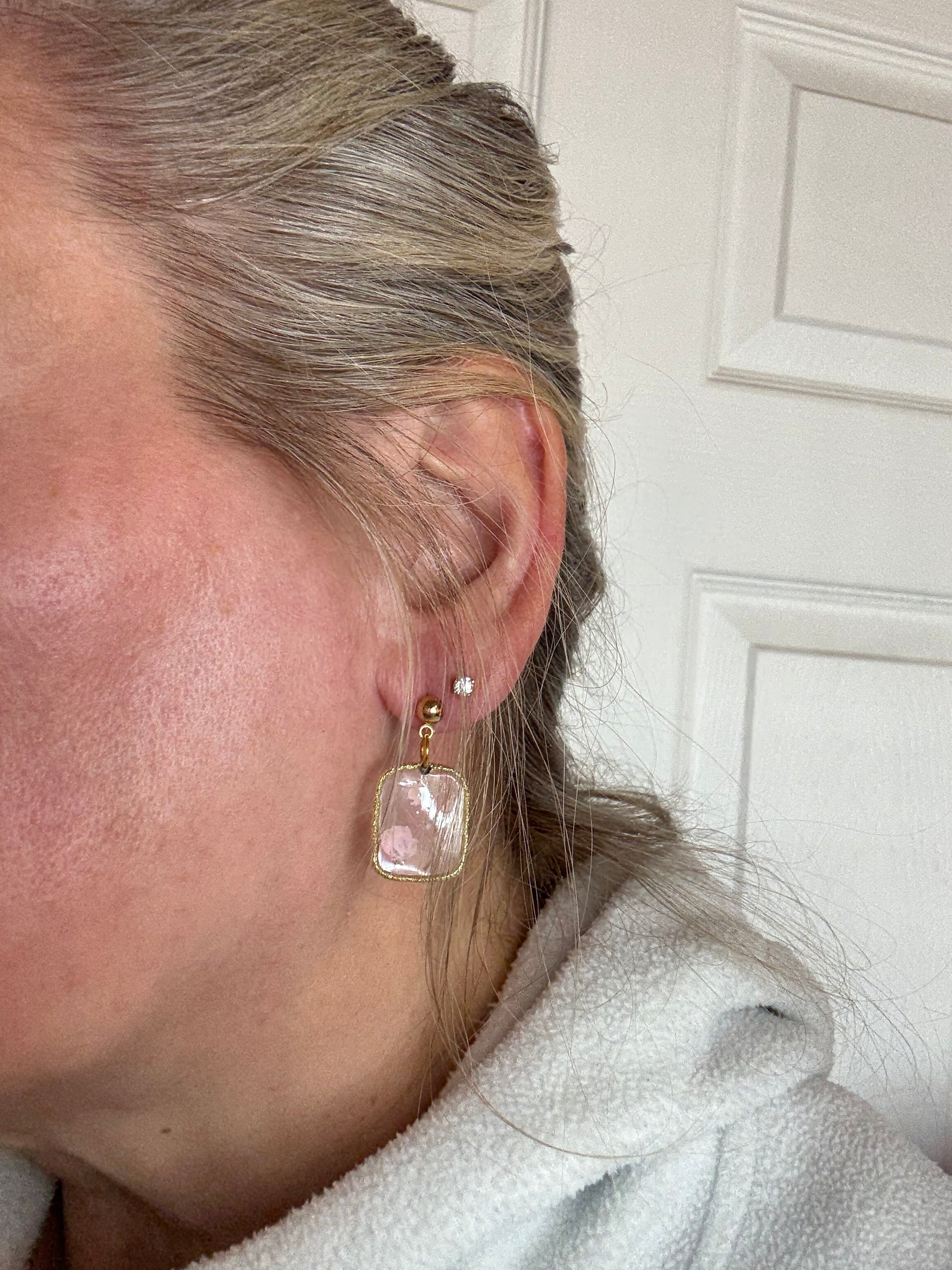 Delicate pink flowers in resin necklace and earrings set