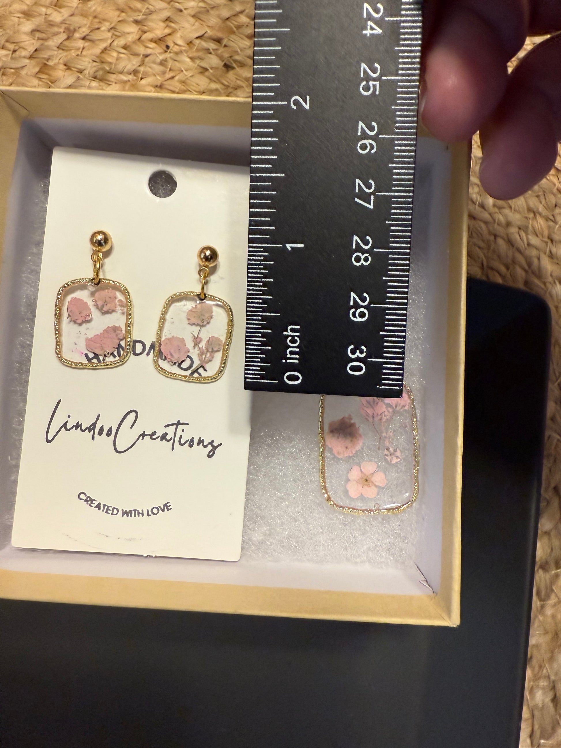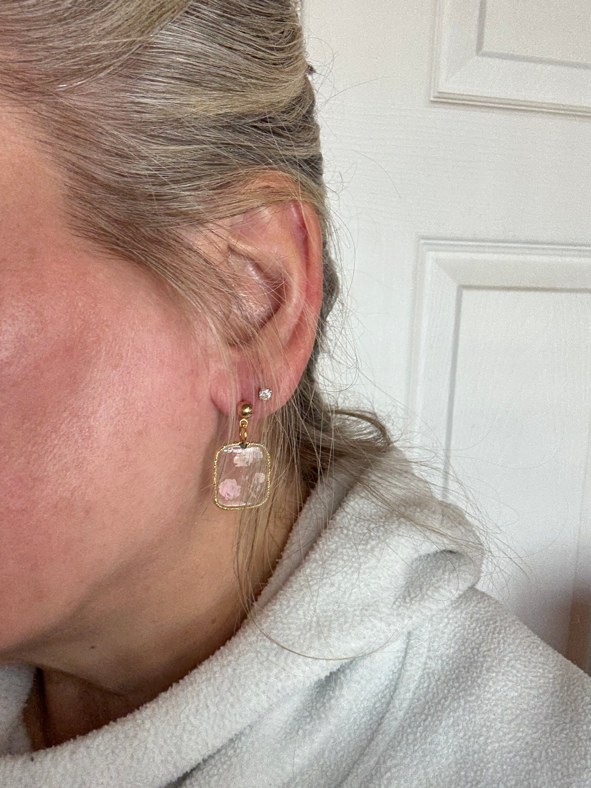Botanical dried pink flowers in resin SET of necklace and earrings