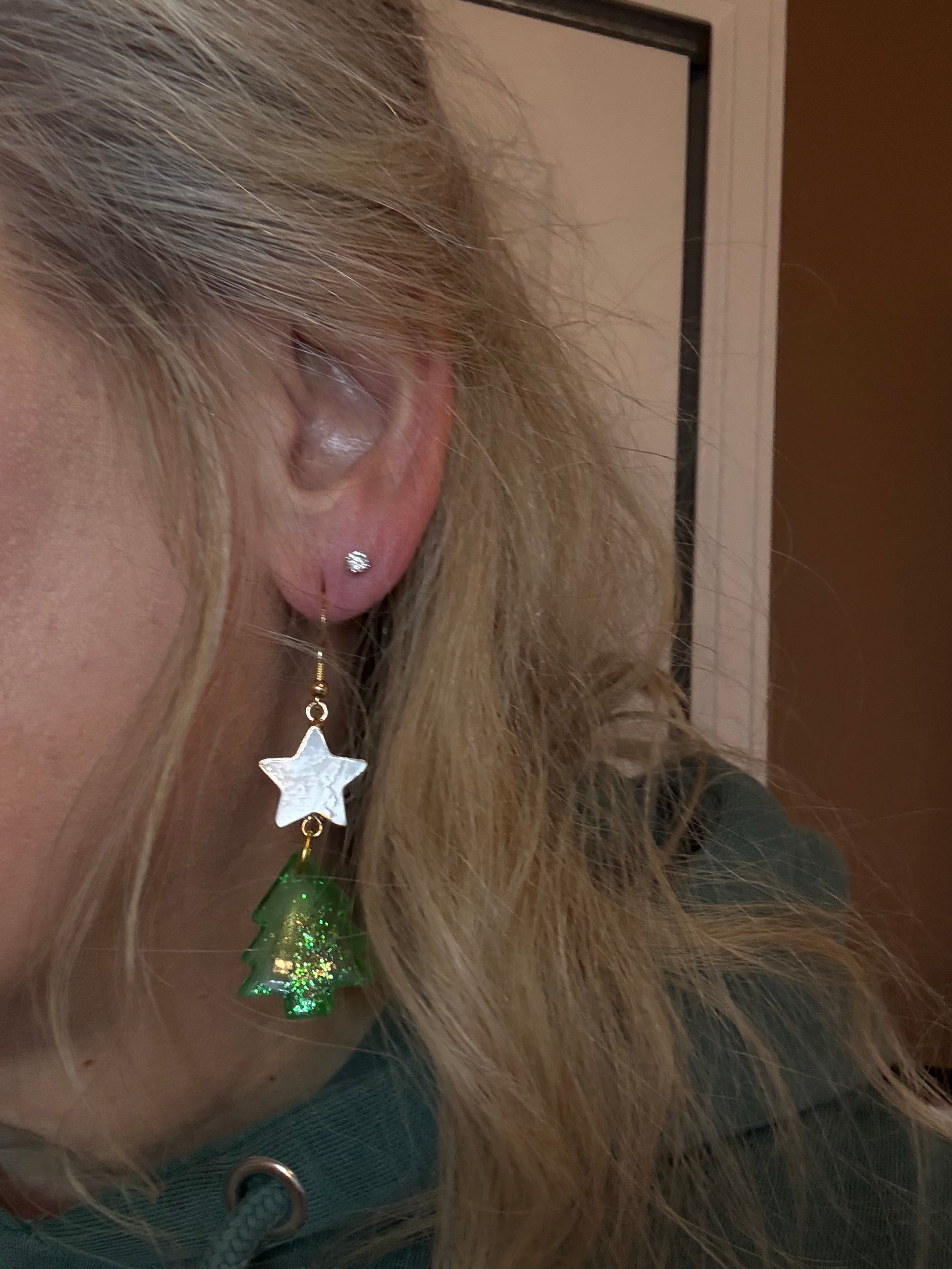 Lightweight, green resin tree earrings for the holidays